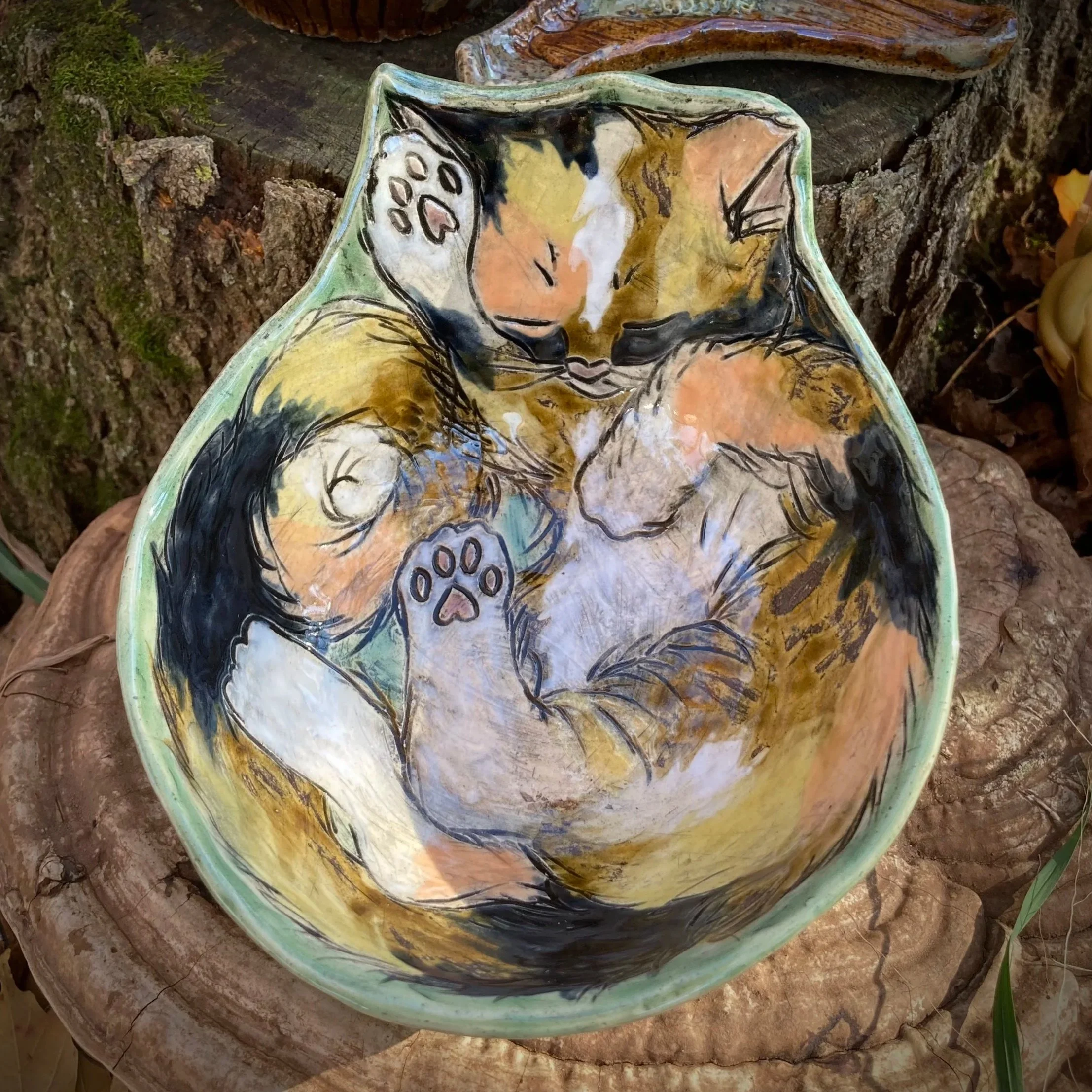 Currently I accept a limited number of custom cat bowl commissions. Clients provide detailed reference photos, and I design and glaze each bowl to reflect the cat’s markings and personality. Additional details are available in my shop.